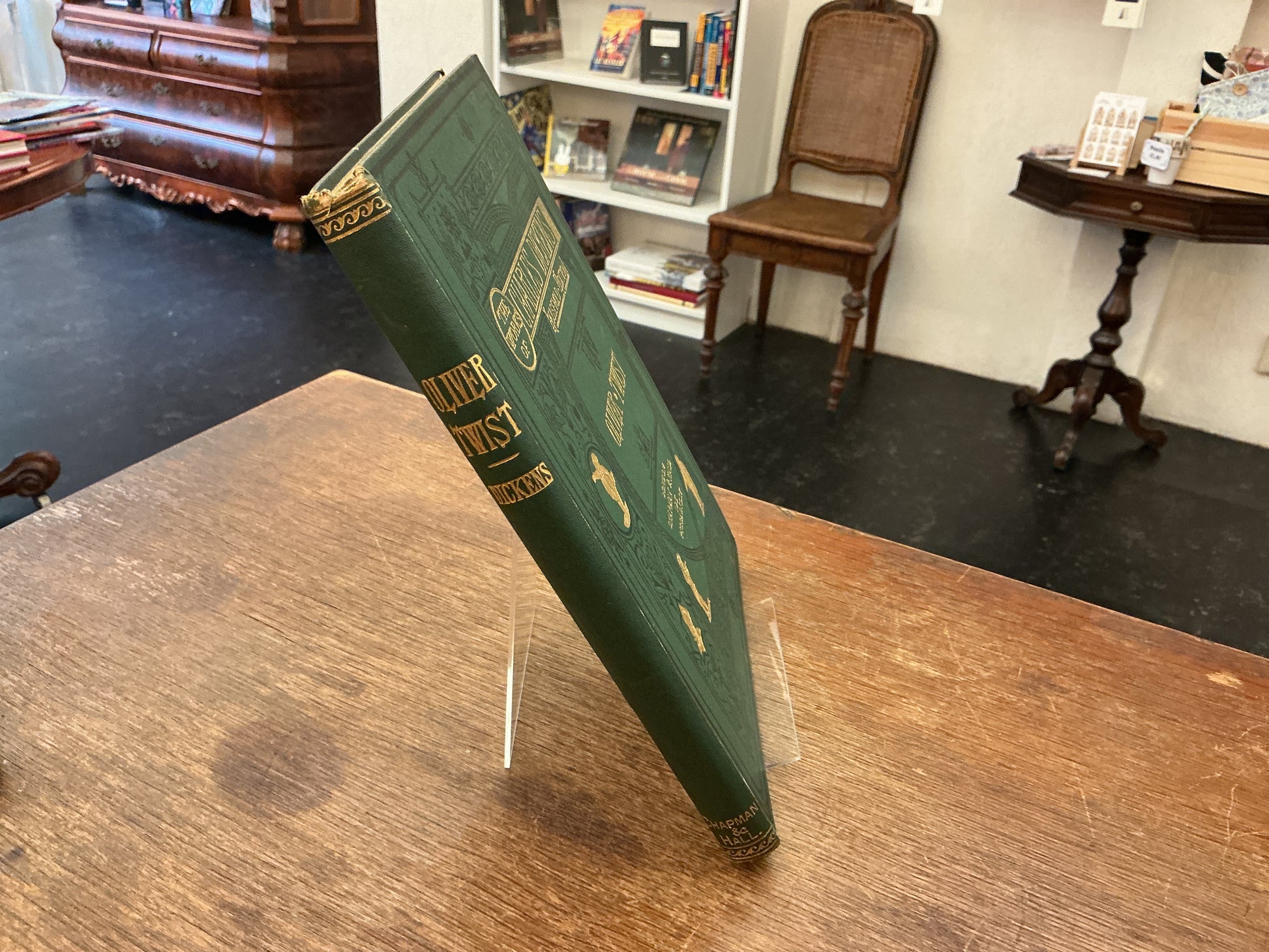 1877 edition of Oliver Twist in good condition. Never been fully read because some of the pages in the back are still connected at the top.