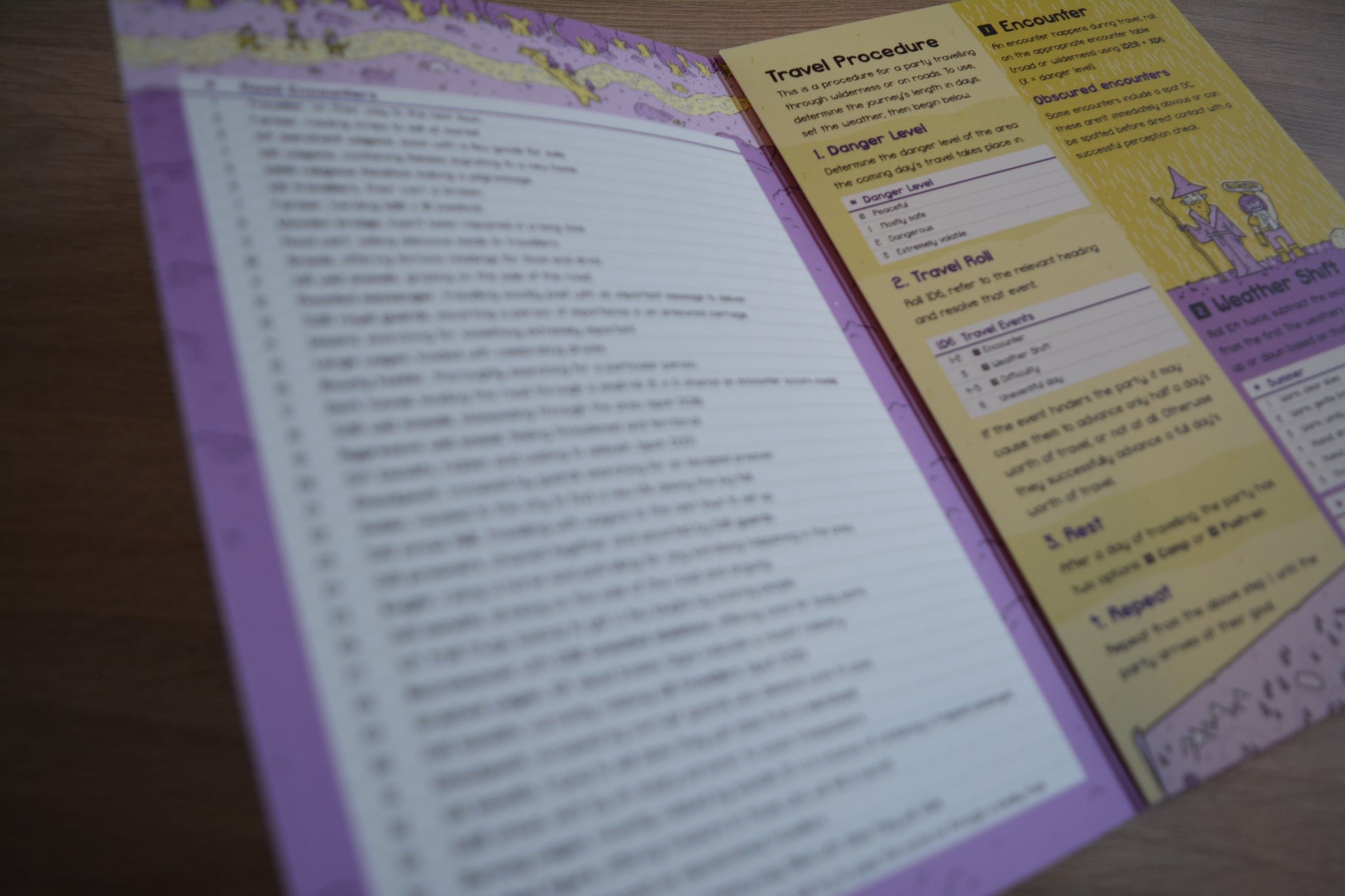 Procedure for spicing up the journey between point A and B! This booklet contains procedures for each day of travel, with encounters, weather shifts and problems to overcome as players march to their goal and camp each night.